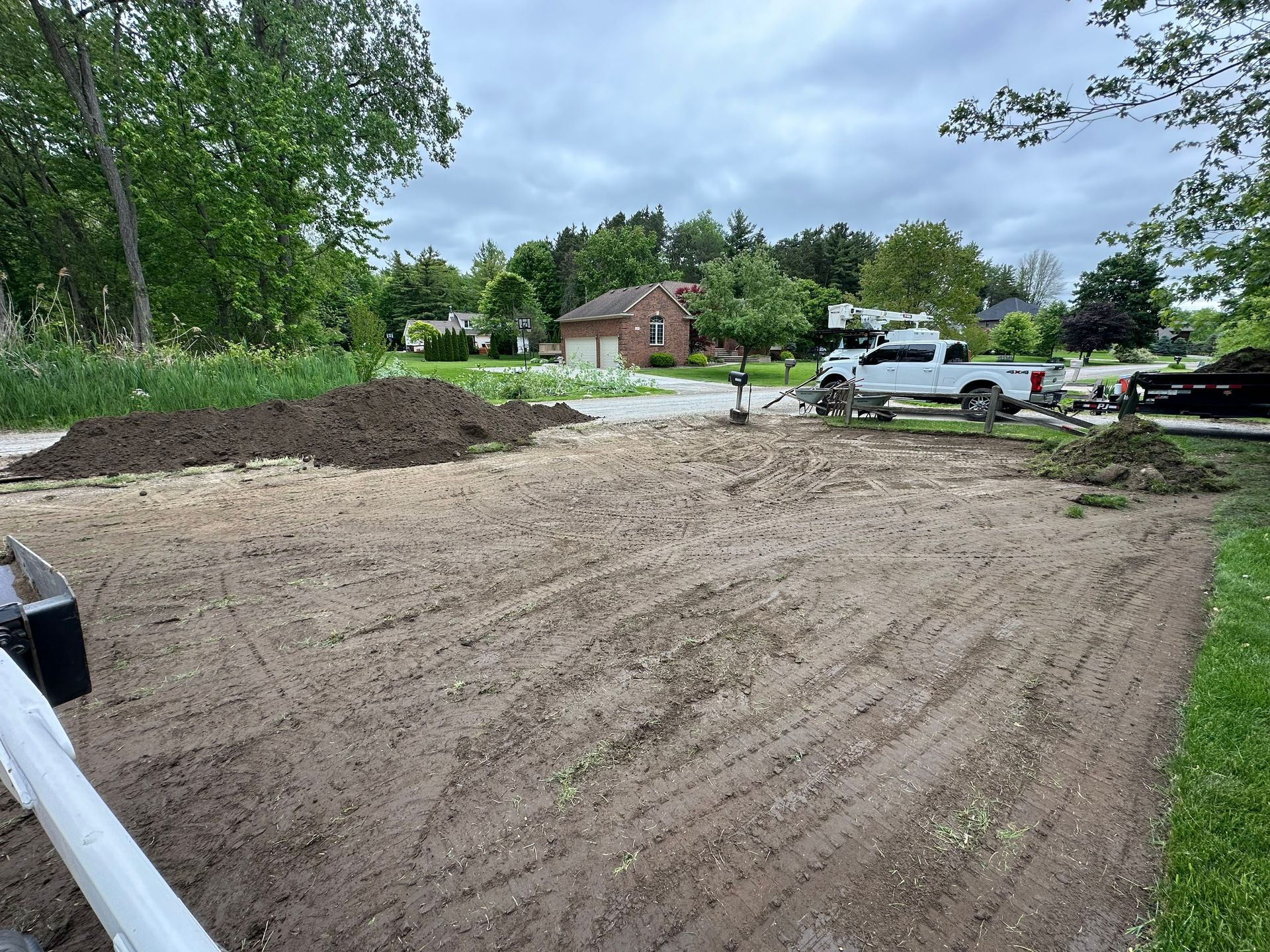 Our process includes removing existing turf when necessary, reshaping and regrading the property to establish proper slope, installing French drains and water redirection systems, and installing high-quality sod for a healthy, even lawn. Every grading project is completed with long-term drainage performance in mind, not just appearance.